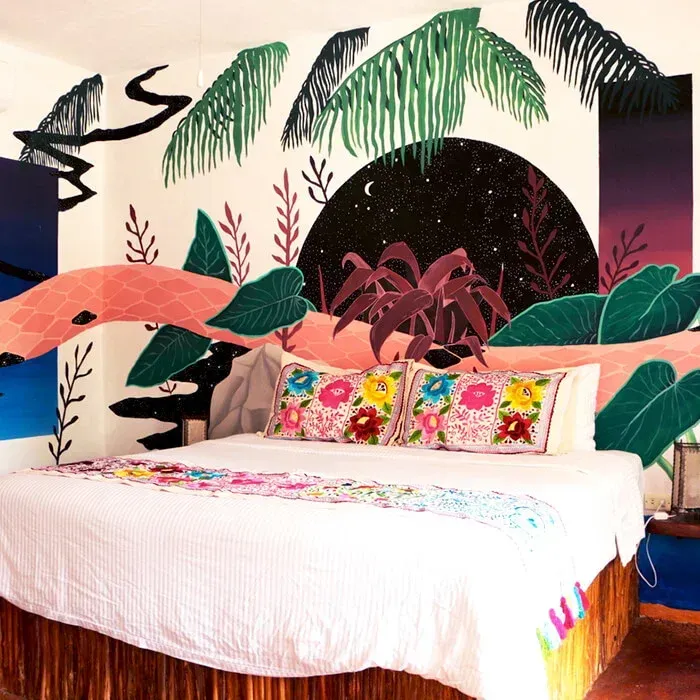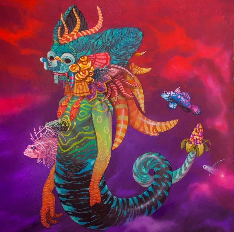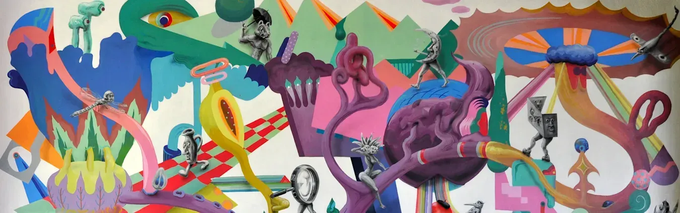 ButtonMuralista onírico cuyas obras se inspiran en personajes de mitología y cuentos de hadas.